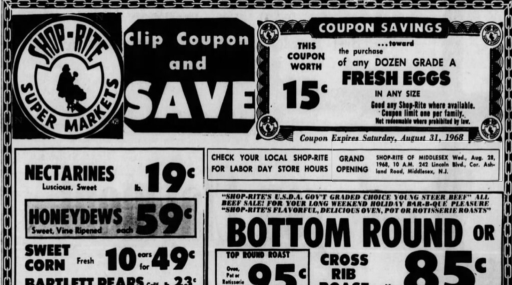 Problem was the new ShopRite on Lincoln Boulevard, not far from our house, opened that day. I missed all the hoopla and heard about it from the other neighborhood kids the next morning.