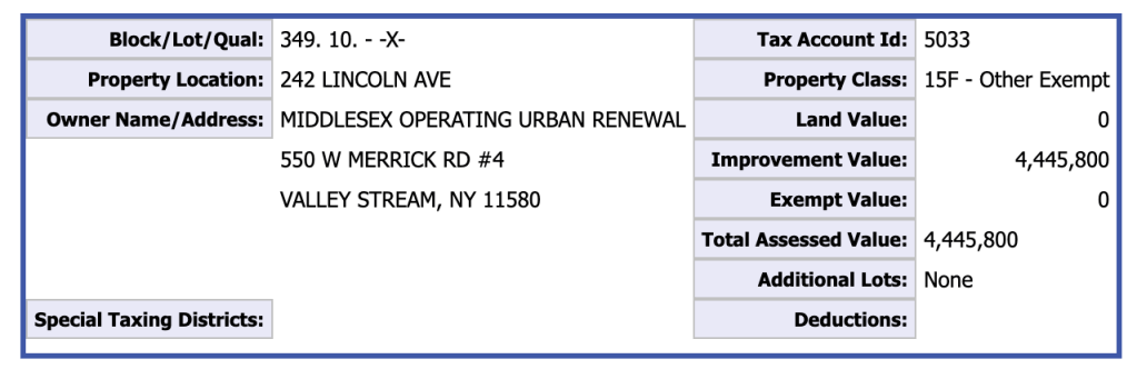 Various online real estate sites have listed the August transaction. Some identify the new owner as Middlesex Supermarket Owner, LLC. Others – like the Middlesex Borough web site – list Middlesex Operating Urban Renewal, LLC.