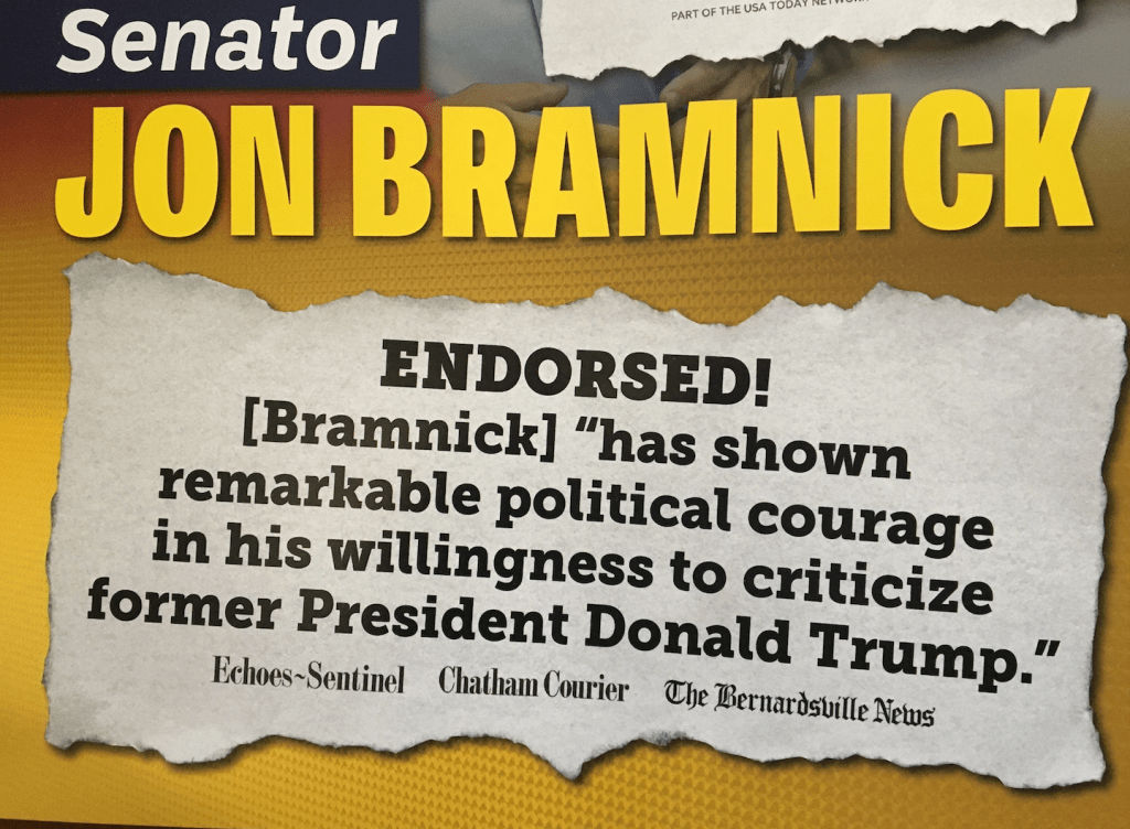 A recent campaign flyer touted Bramnick as “unafraid to take on the extreme policies of the Trenton Democrats.”