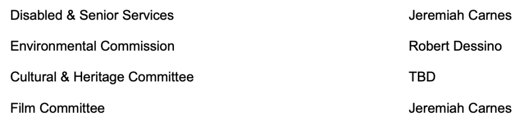 The meeting’s agenda included a resolution naming the liaisons. While all other groups had a council member listed in the right-hand column on a print-out of that resolution, the C&H group did not. Instead, it read “TBD,” for To Be Determined.