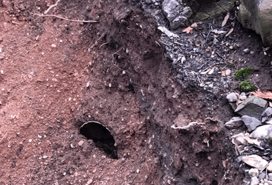 In recent days, the continued soil loss has revealed an old pipe leading out of the sink hole area and pointed toward the stream. Beck now questions whether it is coming from a decades-old waste disposal system such as a cesspool or septic tank. Could that system still be buried on the property from which Heather Lane was carved?