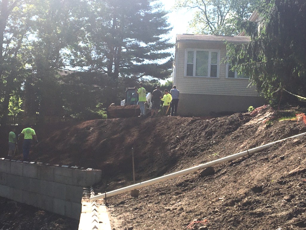 Department of Public Works members, with the help of excavator L.N. Rothberg & Son and a municipal engineer, erected the concrete wall over five days earlier this month. On Monday morning, DPW workers filled in soil above the wall, restoring the yards lost to the erosion.