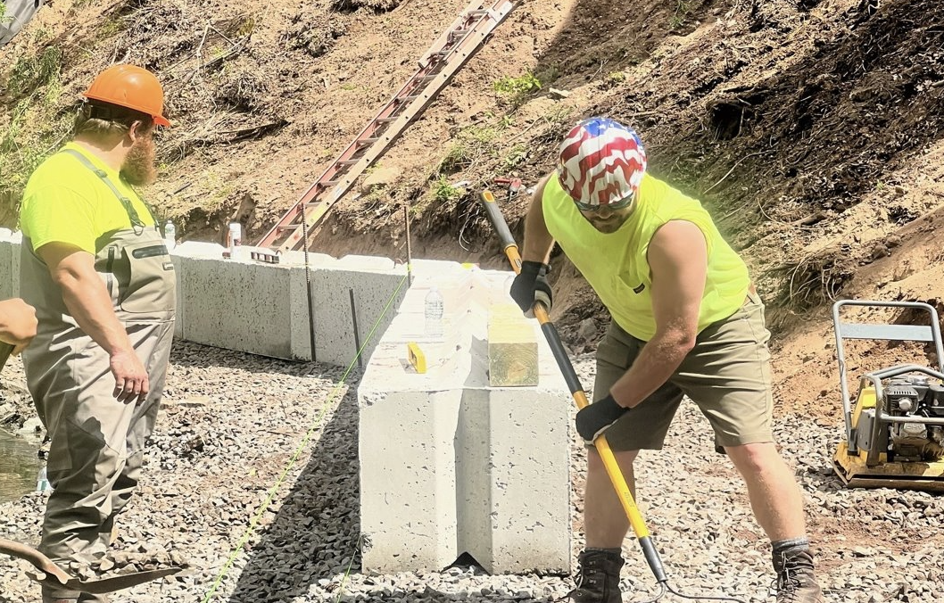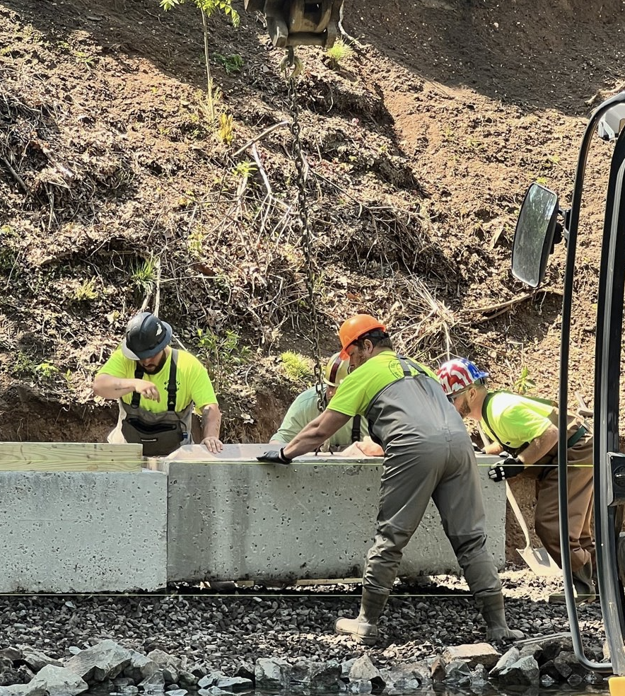 Others noted the nature of the project, which required a permit from the state Department of Environmental Protection. DPW members worked on the edge of the stream’s bank to get the blocks in place with the assistance of Rothberg.