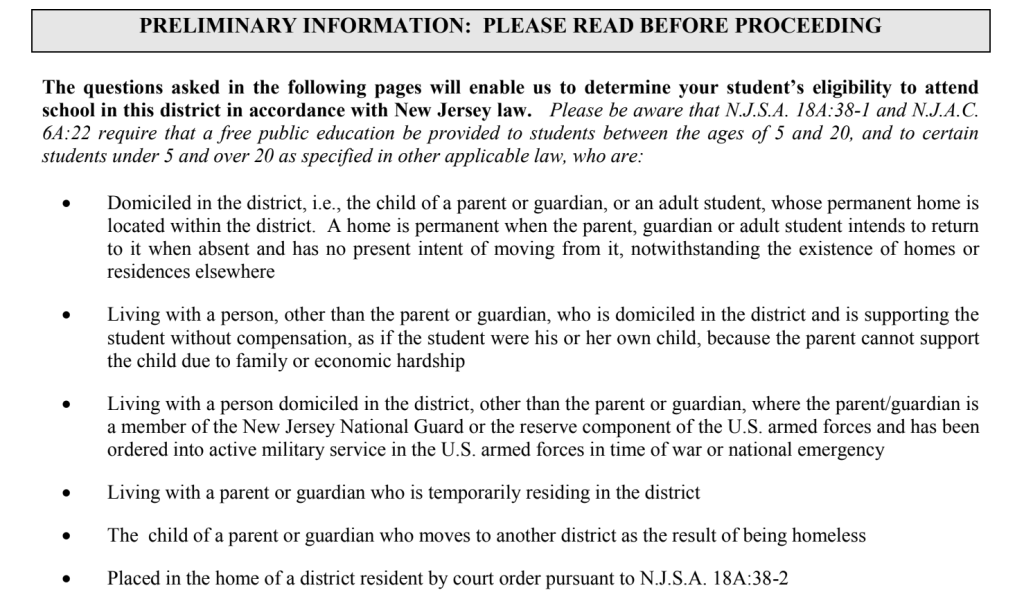 “Please be aware that any initial determination of the student’s eligibility to attend school in this district is subject to more thorough review and subsequent re-evaluation, and that tuition may be assessed in the event that an initially admitted student is later found ineligible,” the website adds.