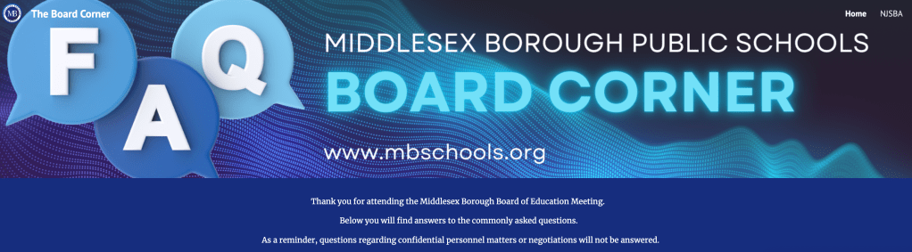 The site will post meeting questions and answers for non-personnel-related topics. It already contains inquiries and responses from the Middlesex board’s Sept. 17-18 meetings. The Board Corner also has a link to the New Jersey School Boards Association’s web site.