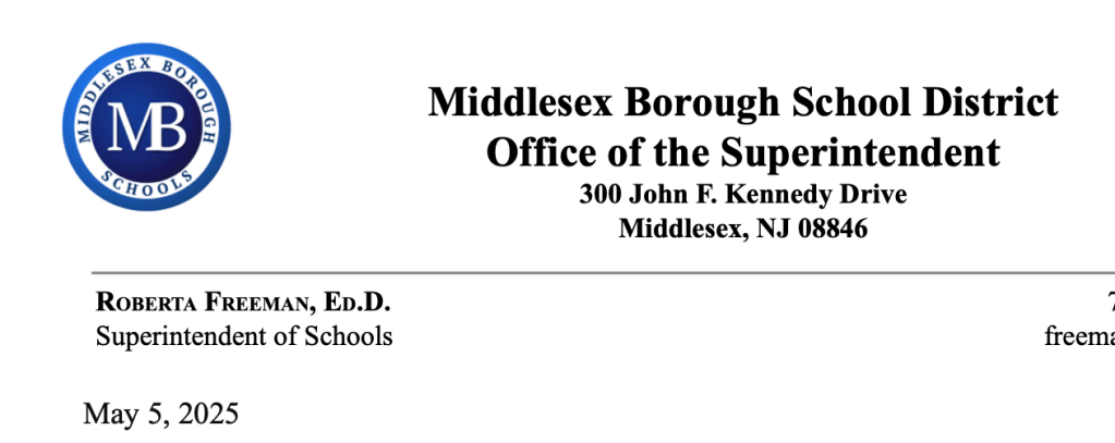 Freeman’s parent message appears to reference the student residency concerns held by some community members. “The reregistration process helps to ensure that all students attending school in the district are residents of Middlesex Borough,” Freeman wrote in the first paragraph.