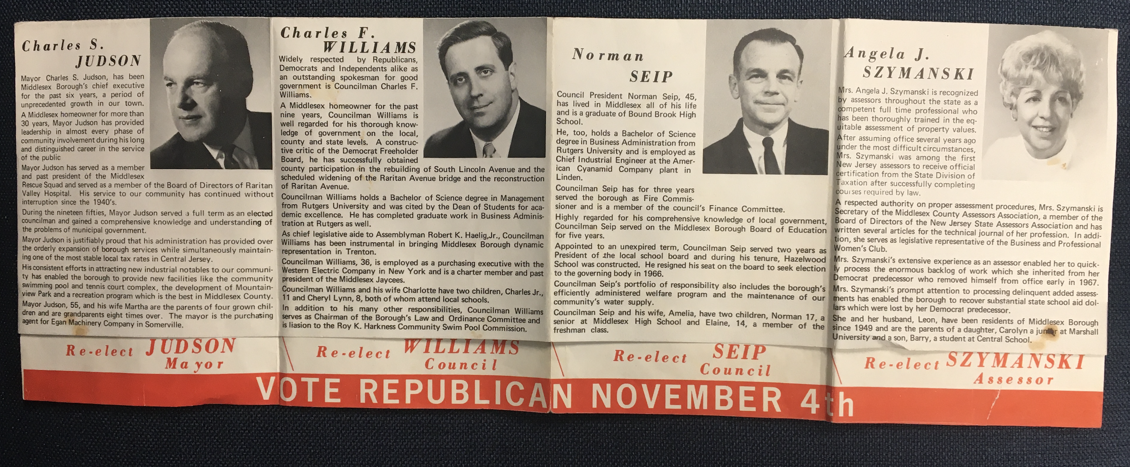 There’s other stuff like Pop Warner football programs, Middlesex Fire Department documents and school district items. There’s a Parker School photo from 1922, a Watchung School newsletter from 1938, and a 1920 document approving the construction of Pierce School.