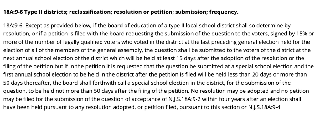 “This model has been used successfully in other municipalities across New Jersey,” the petition continues. “Supporters believe it provides a more efficient, transparent, and responsive governance structure that helps the school district focus more on education and less on politics.”
