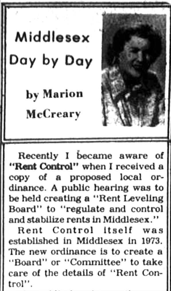 “Unfortunately, Middlesex does have its share of greedy landlords,” answered the Middlesex Borough Civic Tenants Committee, in rebutting her column from the prior week.