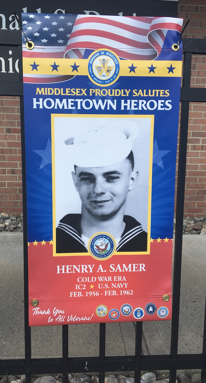 All of the veterans depicted live currently in Middlesex Borough or resided here in the past. Families paid about $100 apiece for the banners, with the borough supplying the manpower to hang and care for them.