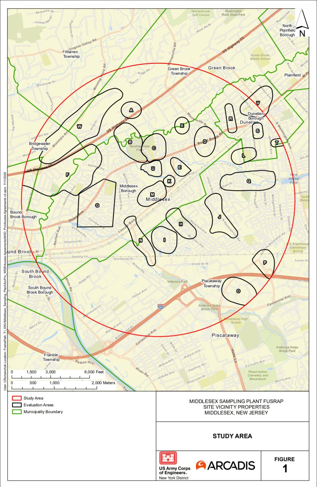 Seven areas within Middlesex Borough – and another five that straddle the municipality’s border – are among two dozen designated for “evaluation” in a continuing study of potential radioactive contamination caused by the shuttered Middlesex Sampling Plant (MSP).