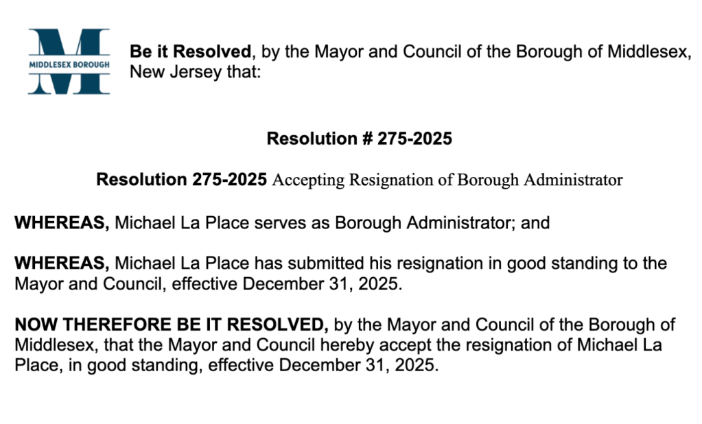 LaPlace’s resignation, effective on Dec. 31, will be accepted by the council at that session, according to the agenda posted on the borough website. The related resolution states that LaPlace “has submitted his resignation in good standing.”